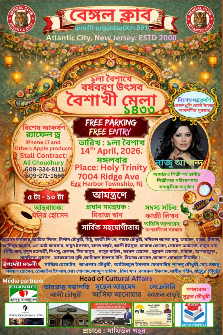 আটলান্টিক সিটিতে বিএএসজের ‘ বৈশাখী মেলা’ ২১ এপ্রিল, মঙ্গলবার