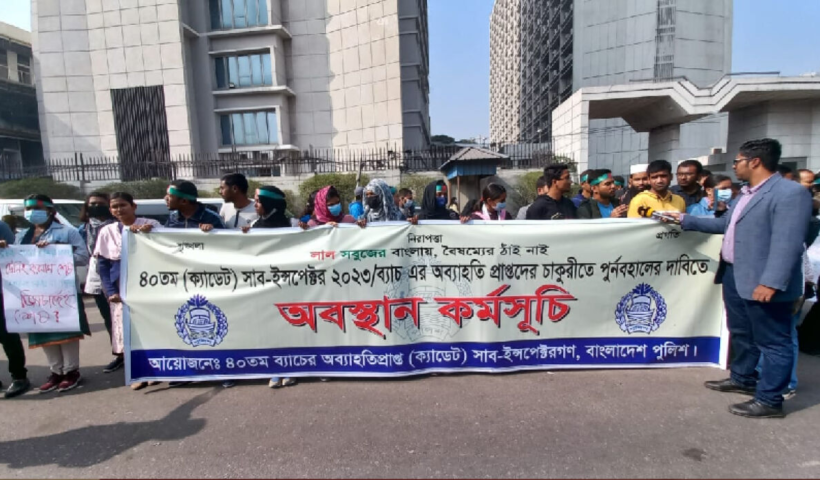 View More চাকরিতে পুনর্বহালের দাবিতে সচিবালয়ে অবস্থান নিয়ে আমরণ অনশনের ঘোষণা পুলিশের ৪০তম ব্যাচের অব্যাহতি পাওয়া এসআইদেরCategory: বাংলাদেশ