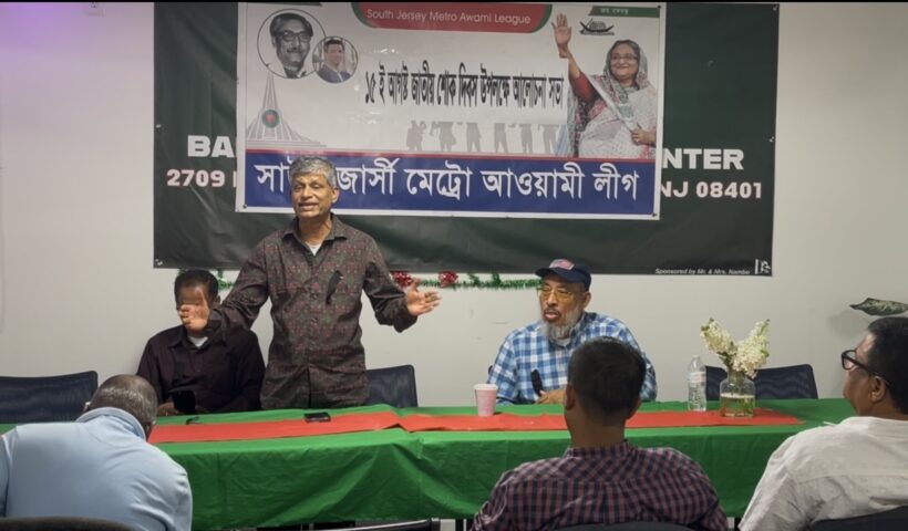 হ-বাংলা নিউজ: সুব্রত চৌধুরী- বঙ্গবন্ধু শেখ মুজিবুর রহমানের শাহাদাত বার্ষিকী ও জাতীয় শোক দিবস উপলক্ষে সাউথ জার্সি মেট্রো আওয়ামী লীগের উদ্যোগে নিউ জার্সি রাজ্যের আটলান্টিক…