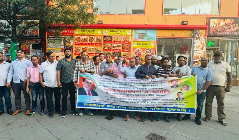 হ-বাংলা নিউজ: “জুলাই-আগস্ট গণঅভ্যুত্থান, শোক ও বিজয়ের বর্ষপূর্তি উদযাপন” উপলক্ষে এক সমাবেশ ও র্যালি-র আয়োজন করা হয়েছে নিউইয়র্ক মহানগর দক্ষিন বিএনপির উদ্যোগে গত ৪ আগস্ট সোমবার বিকালে নিউইয়র্কের জ্যাকসন হাইটস এর ডাইভারসিটি প্লাজায়। ভারপ্রাপ্ত সভাপতি মোহাম্মদ সোহরাব হোসেন এর সভাপতিত্বে ও সাধারণ সম্পাদক মোহাম্মদ বদিউল আলমের সন্চালনায় প্রধান অতিথি হিসেবে বক্তব্য রাখেন বিএনপির কেন্দ্রীয় নির্বাহী কমিটির আন্তর্জাতিক বিষয়ক সম্পাদক ও বহির্বিশ্ব বিএনপির সাংগঠনিক সমন্বয়ক জনাব আনোয়ার হোসেন খোকন এবং প্রধান বক্তা হিসেবে বক্তব্য রাখেন নিউইয়র্ক মহানগর দক্ষিন বিএনপির সভাপতি জনাব হাবিবুর রহমান সেলিম রেজা। উক্ত সমাবেশে আরো বক্তব্য রাখেন সাংগঠনিক সম্পাদক মোহাম্মদ আলমগীর হোসেন মৃধা, সাবেক যুগ্ম আহ্বায়ক এমলাক হোসেন ফয়সাল, রুহুল আমিন নাসির, নাছির উদ্দিন, কামাল উদ্দিন দিপু, ব্রুকলিন বিএনপির আহ্বায়ক গোলাম মাহমুদ, সদস্য সচিব মিজানুর রহমান মানিক এবং মহানগর দক্ষিন বিএনপির সাবেক সদস্য ফারদিন রনি। উক্ত সমাবেশে উপস্থিত ছিলেন সাবেক যুগ্ম আহ্বায়ক জিয়াউল হক মিশন, সাবেক যুগ্ম সদস্য সচিব ছাইদুর খান ডিউক, সাবেক সদস্য মোঃ আব্বাস উদ্দিন, মিজানুর রহমান মিজান, নুরুল হুদা, জামালপুর রহমান চৌধুরী সহ হাসান মাহমুদ, মনিরুল ইসলাম মনির, মোঃ অহেদুজ্জামান নিলু, রাশেদ মিয়া, মোঃ আক্তারুজ্জামান, তোফাজ্জল রহমান, মোঃ সোহেল রানা ইমন, নুরে আলম চৌধুরী, মো: নাজমুল , মোঃ আমিনুল ইসলাম মিঠু , এস এম লুৎফর, চৌধুরী সিদ্দিক, আবু বকর, ইকবাল হোসাইন, শেখ উজ্জ্বল,জাহাঙ্গীর আলম অপু, মোঃ তারেক, মোঃ ওসমান গনি, মোঃ আরিফুল, ব্রুকলিন বিএনপি নেতা হুমায়ুন কবির, মোঃ বাহার, গোলাম কাদের, মোঃ মাহরুফ, শাফিয়াল ফামিন, মোঃ কামাল সহ আরো অনেকে। প্রধান অতিথির বক্তব্যে জনাব আনোয়ার হোসেন খোকন বলেন ফ্যাসিবাদের পতন হলেও এক বছরে দেশে বিপ্লব পরবর্তী কাংখিত লক্ষ অর্জিত হয়নি। এখনো দেশী বিদেশী চক্রান্ত চলছে বাংলাদেশের বিরুদ্ধে।জুলাই বিপ্লবকে ব্যর্থ করে দেশে নৈরাজ্য সৃষ্টি করে ফ্যাসিবাদের দোসররা এখনো ফায়দা নিতে চায়। বিএনপির ভারপ্রাপ্ত চেয়ারম্যান জনাব তারেক রহমানের দুরদর্শী নেতৃত্বে বাংলাদেশ জাতীয়তাবাদী দল দেশের স্বাধীনতা ও সার্বভৌমত্ব রক্ষায় বদ্ধ পরিকর। বাংলাদেশে নির্বাচন পুর্ব বর্তমান পরিস্থিতিতে জাতীয়তাবাদী দলের সকলকে ঐক্যবদ্ধ থাকার আহবান জানান জনাব আনোয়ার হোসেন খোকন। প্রধান বক্তা জনাব সেলিম রেজা বলেন স্বৈরাচার শেখ হাসিনার বিরুদ্ধে আমরা গত ১৬ বছর আন্দোলন সংগ্রামে লিপ্ত ছিলাম, তারই ধারাবাহিকতায় ফ্যাসিবাদের পতন হয়েছে। কিন্ত ফ্যাসিবাদের দোসররা এখনো দেশে বিশৃঙ্খলা সৃষ্টি করে রাজন