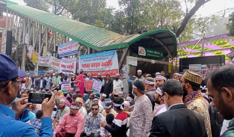 হ-বাংলা নিউজ: সোমবার প্রতীকী অনশনের পাশাপাশি ১২.৩০ মিনিটে বিক্ষোভ মিছিল এবং আগামী মঙ্গলবার প্রতীকী অনশনের পাশাপাশি ১২.৩০ মিনিটে মার্চ টু সেক্রেটারি কর্মসূচি অনুষ্ঠিত হবে। মার্চ টু সেক্রেটারিয়েট কর্মসূচিতে শিক্ষক—কর্মচারীরা পরিবারের সদস্যদের নিয়ে অংশগ্রহণ করবেন। এমপিওভুক্ত শিক্ষায় বৈষম্য নিরসনসহ জাতীয়করণের দাবিতে জাতীয় প্রেসক্লাবের সামনে এমপিওভুক্ত শিক্ষক—কর্মচারীদের লাগাতার অবস্থান কর্মসূচির ১২ তম দিনে এবং প্রতীকী অনশনের ৩য় দিনে দেশের বিভিন্ন প্রান্ত থেকে শত শত শিক্ষক—কর্মচারী অংশগ্রহণ করেন। শিক্ষক—কর্মচারীগণ সরকারি নিয়মে বাড়িভাড়া, চিকিৎসা ভাতা, শতভাগ উৎসব ভাতা ও সর্বজনীন (প্রতিষ্ঠান প্রধান থেকে কর্মচারী পর্যন্ত) বদলীর দাবি জানান। জোটের সদস্য সচিব প্রিন্সিপাল দেলাওয়ার হোসেন আজীজী বলেন, মাননীয় শিক্ষা উপদেষ্টা আমাদের ভাতাসমূহ পরিবর্তনের মৌখিক আশ্বাস দিয়েছেন। কিন্তু এমপিওভুক্ত শিক্ষক—কর্মচারিগণ বারবার প্রতারিত হয়ে আশ্বাসের উপর বিশ্বাস করে আবারও প্রতারিত হতে চায় না। সরকারে আহ্বানে সাড়া দিয়ে ১৭ ফেব্রুয়ারি এমপিওভুক্ত শিক্ষা জাতীয়করণ প্রত্যাশী জোটের ৬ সদস্যের প্রতিনিধি দল শিক্ষা মন্ত্রণালয়ের অতিরিক্ত সচিব মোঃ হুমায়ুন কবিরের সাথে বৈকঠ করেন। নেতৃবৃন্দ অবিলম্বে শতভাগ উৎসব ভাতার প্রজ্ঞাপন জারির জোর দাবি জানান। বাড়িভাড়া এবং মেডিকেল ভাতা বৃদ্ধির সুস্পষ্ট ঘোষণা দাবি করেন। এ সময় সচিব বিষয়টি নিয়ে কর্তৃপক্ষের সাথে আলোচনা করে সিদ্ধান্ত পরে জানানোর কথা বলেন। কিন্তু এখন পর্যন্ত সরকারের পক্ষ থেকে কোনো সিদ্ধান্ত জানানো হয়নি। আজ ১২ তম দিনে শিক্ষকরা ৩য় দিনের মতো প্রতীকী অনশন পালন করেছেন। আগামীকাল সোমবার প্রতীকী অনশনের পাশাপাশি ১২.৩০ মিনিটে বিক্ষোভ মিছিল অনুষ্ঠিত হবে। আগামী মঙ্গলবার প্রতীকী অনশনের পাশাপাশি ১২.৩০ মিনিটে মার্চ টু সেক্রেটারিয়েট কর্মসূচি অনুষ্ঠিত হবে। মার্চ টু সেক্রেটারিয়েট কর্মসূচিতে শিক্ষক—কর্মচারীরা পরিবারের সদস্যদের নিয়ে অংশগ্রহণ করবেন। উল্লেখ্য যে, এমপিওভুক্ত শিক্ষক—কর্মচারিগণ মাসিক ১০০০/— বাড়িভাড়া, ৫০০/— চিকিৎসা ভাতা ও ২৫% উৎসব ভাতা পেয়ে থাকেন যা অত্যন্ত অযৌক্তিক ও অমানবিক। ২৫% উৎসব ভাতা হিসেবে একজন এন্ট্রি লেভের শিক্ষক ৩১২৫ টাকা উৎসব ভাতা পেয়ে থাকেন যা দিয়ে দ্রব্যমূল্যের উর্ধগতির এই বাজারে কোনোভাবেই একজন শিক্ষকের পক্ষে ঈদ উৎসব উদযাপন করা সম্ভব নয়। এই কর্মসূচির সাথে শিক্ষার্থী ও অভিভাবকদেরও স্বার্থ জড়িত রয়েছে। কারণ বর্তমানে এমপিওভুক্ত শিক্ষা প্রতিষ্ঠানে পড়াশোনা করতে ১ জন শিক্ষার্থীকে মাসে ২০০ টাকা থেকে শুরু করে ৩০০০/ টাকা পর্যন্ত বেতন দিতে হয়। এমপি