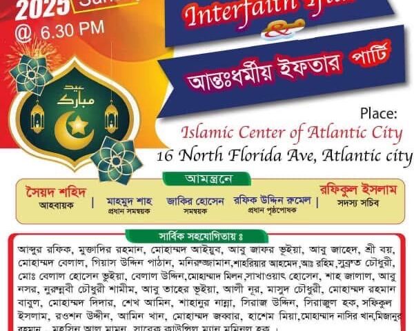আটলান্টিক সিটিতে ২৩ মার্চ ,রবিবার বিএএসজের আন্তঃধর্মীয় ইফতার মাহফিল