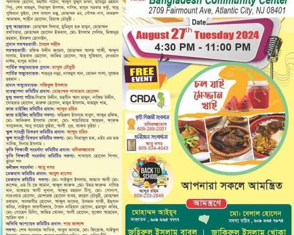 হ-বাংলা নিউজ: সুব্রত চৌধুরী- নিউ জারসি রাজ্যের আটলান্টিক সিটিতে বাংলাদেশ এসোসিয়েশন অফ সাউথ জারসি (বিএএসজে) এর উদ্যোগে ‘বাংলাদেশী আমেরিকান ফেস্টিভ্যাল ও মেজবান’ এর আয়োজন করা হয়েছে।আগামী ২৭ আগষ্ট, মঙ্গলবার…