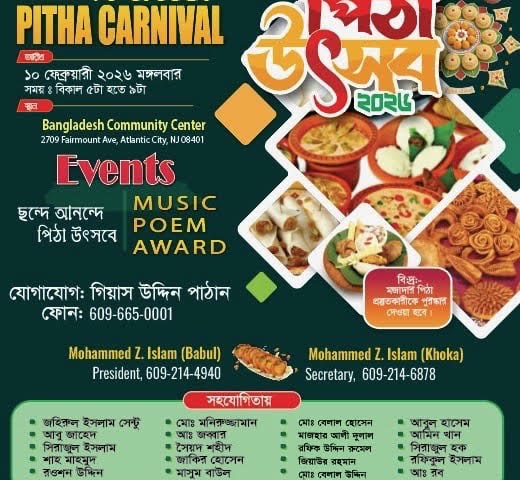 View More আটলান্টিক সিটিতে বিএএসজের শীতবস্ত্র বিতরণআটলান্টিক সিটিতে ১০ ফেব্রুয়ারি, মংগলবার বিএএসজের উদ্যোগে ‘পিঠা উৎসব’