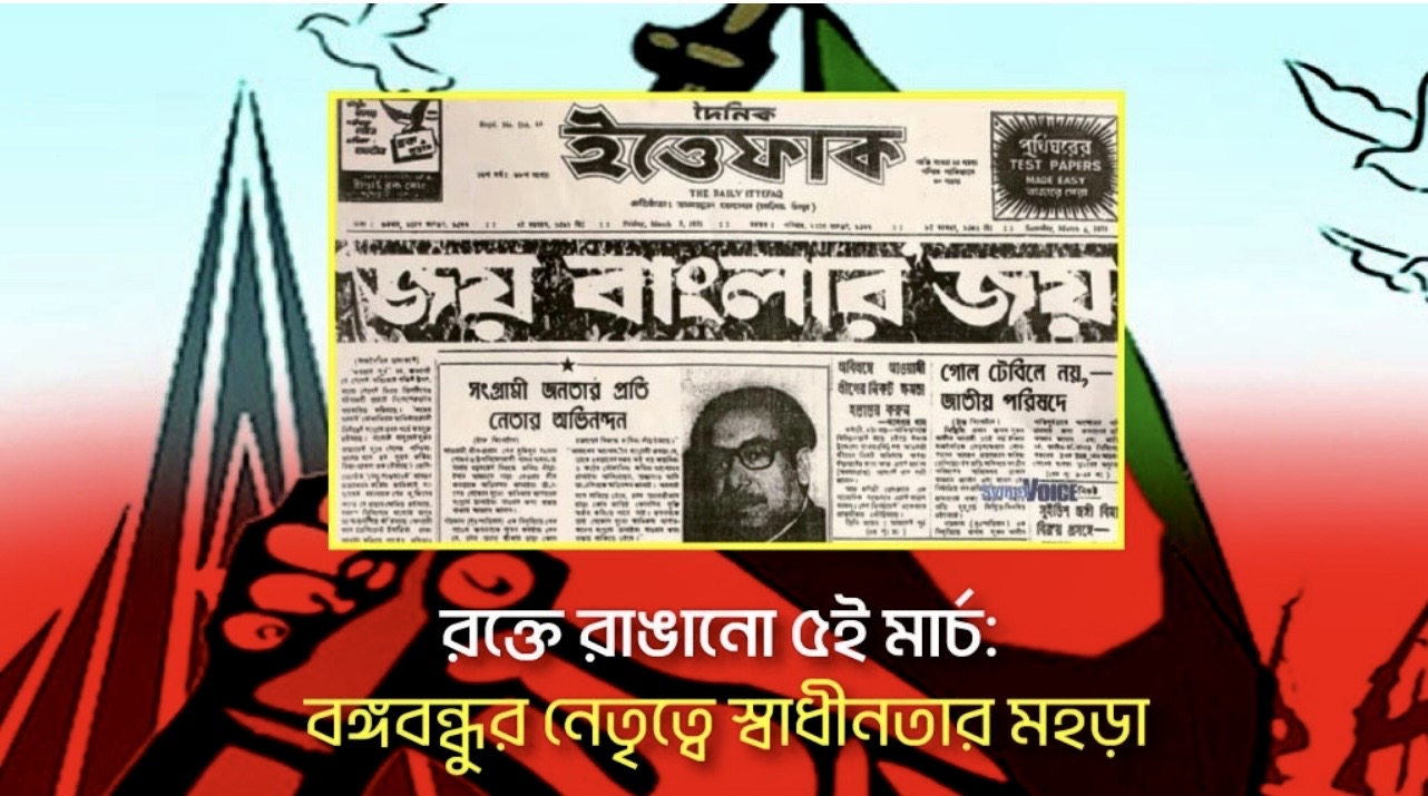 ৫ই মার্চ ১৯৭১ ছিল বাঙালির আত্মপরিচয় প্রতিষ্ঠার লড়াইয়ের এক গুরুত্বপূর্ণ ধাপ। বঙ্গবন্ধুর অদম্য সাহস আর বাঙালির ঐক্যবদ্ধ প্রতিরোধ সেদিন প্রমাণ করেছিল যে, বন্দুকের নল দিয়ে একটি জাতির মুক্তির আকাঙ্ক্ষাকে দমানো সম্ভব নয়। এটি ছিল পরাধীনতার শৃঙ্খল ছিঁড়ে লাল-সবুজের পতাকার দিকে ধাবিত হওয়ার এক বলিষ্ঠ পদযাত্রা।