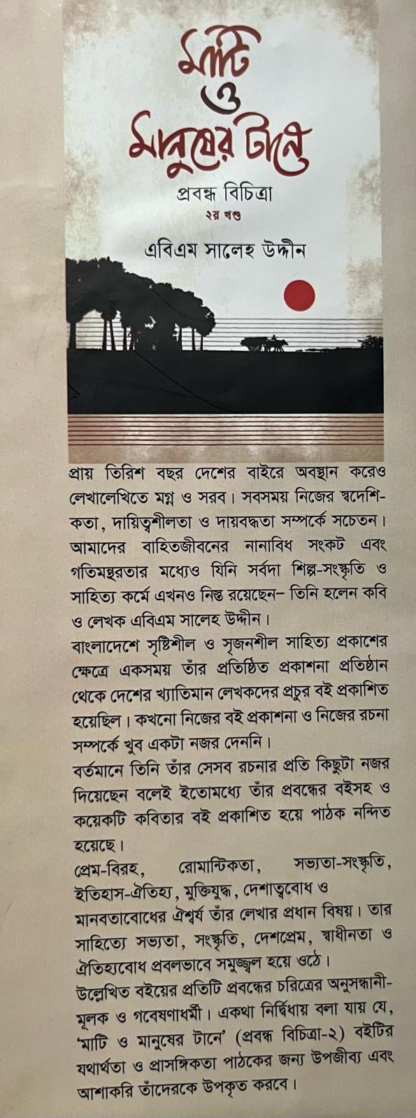 মাটি ও মানুষের টানে(প্রবন্ধ বিচিত্রা) এবিএম সালেহ উদ্দীনের তৃতীয় প্রবন্ধের বই ।