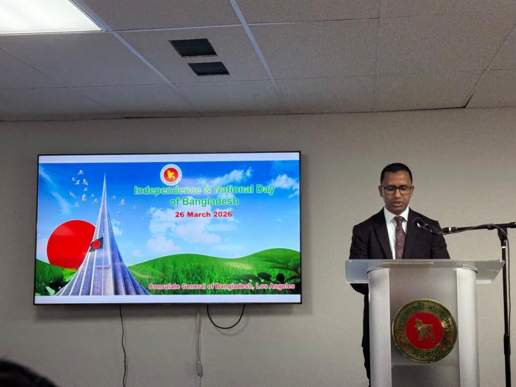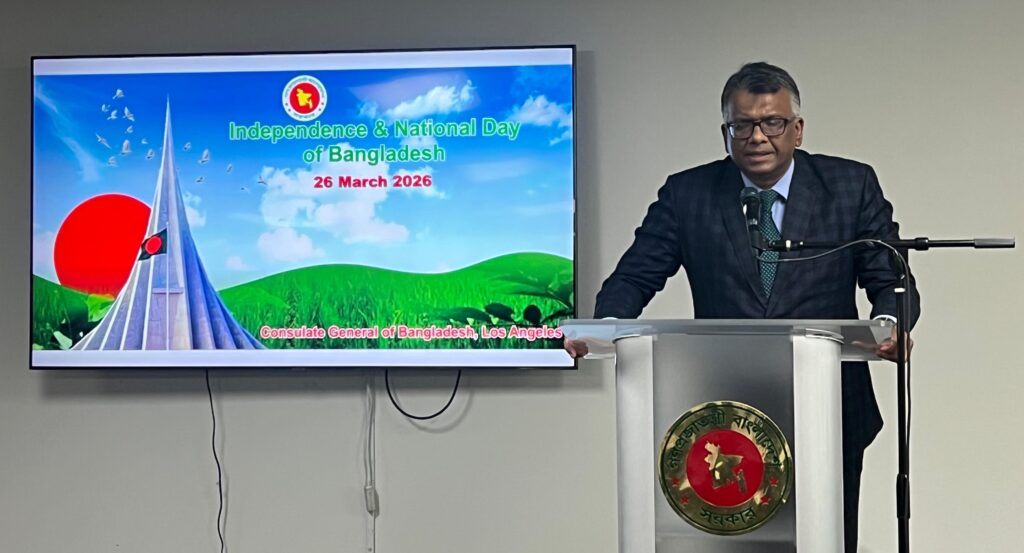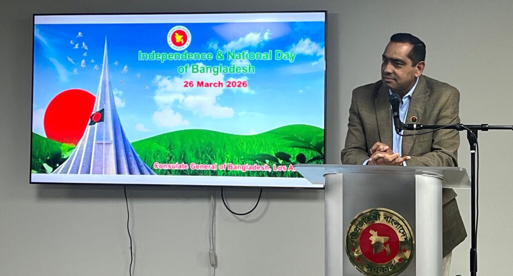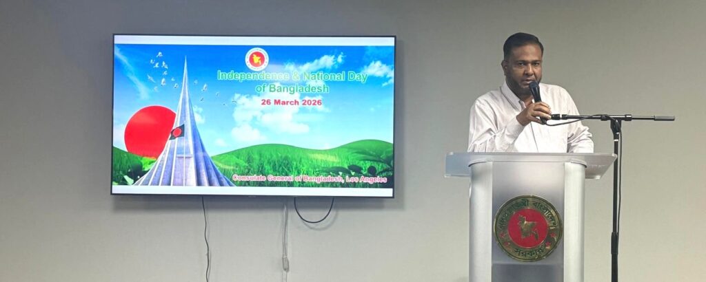 খায়রুজ্জামান মামুনঃ বাংলাদেশের মহান স্বাধীনতা ও জাতীয় দিবস ২০২৬ উপলক্ষে গতকাল লস এঞ্জেলেস কনস্যুলেট অফিসে অনুষ্ঠিত হয়েছে এক আলোচনা সভা।