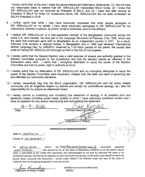 লস এঞ্জেলেস কুতুবির এপোলজি। July 29, 2024 No Comments হলিউড বাংলা নিউজঃ সেটেলমেন্ট এগ্রিমেন্ট মোতাবেক একটি এভিডেভিট অব এপোলজির কপি বাংলাদেশ কমিউনিটির উদ্দ্যেশ্যে প্রচার করা হল।