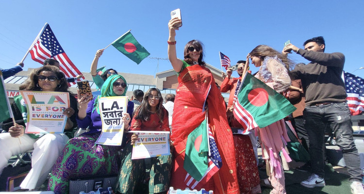 হলিউড বাংলা নিউজঃ যথাযোগ্য মর্যাদা এবং বর্ণিল আয়োজনে ক্যালিফোর্নিয়ার লস এঞ্জেলেসে পালিত হলো বাংলাদেশের ৫৩তম মহান স্বাধীনতা ও জাতীয় দিবস। লস এঞ্জেলসের অন্যতম জনপ্রিয় সামাজিক সংগঠন বাংলাদেশ ইউনিটি ফেডারেশন অব লস এঞ্জেলেস (বাফলা) আয়োজন করে বাংলাদেশ ডে প্যারেড ও ফেস্টিভল নামের এই অনুষ্ঠান। দুই দিন ব্যাপী এই উৎসবকে ঘিরে মহ আনন্দে মেতেছিল লস এঞ্জেলেস প্রবাসী বাঙালীরা । গত ৬ ও ৭ মে দুইদিন ব্যাপী নানা অনুষ্ঠানের মধ্য দিয়ে প্রতি বছরের ন্যায় এবারও ‘বাংলাদেশ ডে প্যারেড’ বাস্তবায়ন করে বাংলাদেশ ইউনিটি ফেডারেশন অব লস এঞ্জেলেস (বাফলা)। বলা যায় বাফলার সভাপতি জনাব জিয়া ইসলাম ও সাধারণ সম্পাদক মাহবুবুর রহমান শাহীন এর নেতৃত্বে বর্তমান কমিটির অসামান্য পরিশ্রম ও দক্ষতার ফসল এবারের এই আয়োজন। বর্ণিল এ আয়োজন লস এঞ্জেলেস প্রবাসী বাংলাদেশী কমিউনিটির যেন মিলনমেলায় পরিনত হয়েছিল এই অনুষ্ঠান। প্যারেডের সময় লস এঞ্জেলেসের রাজপথে লাল-সবুজের পতাকা আর রঙ-বেরঙের পোষাকে বাংলাদেশের প্রতিচ্ছবি যেন উঠে এসেছিল এক ঝলক।