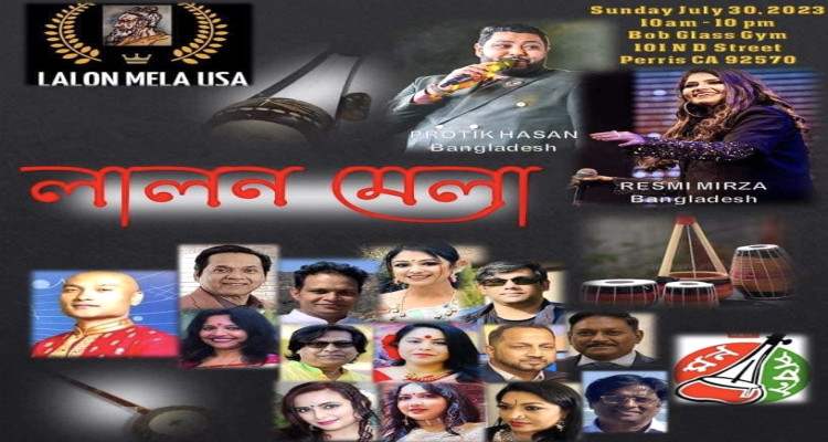 সাত সমুদ্র তের নদীর ওপারে সুদুর ক্যালিফোর্নিয়ার ইনল্যান্ড এম্পায়ারের প্যারিস শহরে বিগত কয়েক বছর ধরে আয়োজন করা হচ্ছে লালন মেলার। তারই ধারাবাহিকতায় এবারও অনুষ্ঠিত হতে যাচ্ছে ইতিমধ্যে জনপ্রিয় হয়ে ওঠা সেই “লালন মেলা”। আগামী ৩০শে জুলাই রবিবার সিটি অব প্যারিসের Bob Glass Gym, 101 N D Street Perris, CA 92570. এ সকাল ১০টা থেকে রাত দশটা পর্যন্ত বিভিন্ন আয়োজনে উদযাপিত হবে এই লালন মেলা। বাংলাদেশ থেকে আগত প্রতীক হাসান, শামীম হাসান ও রেশমি মির্জা এবং স্থানীয় জনপ্রিয় শিল্পীদের অংশগ্রহনে নাচ গান, দেশীয় ঐতিহ্যের বিভিন্ন রকম বাহারি খাবারের স্টল, শাড়ি গহনার দোকান থাকবে অতিথিদের কেনা কাটার সুবিধার্থে। মেলার আয়োজকদের অন্যতম মোঃ রহমান রাজু দক্ষিণ ক্যালিফোর্নিয়ায় বসবাসরত সকল প্রবাসি বাঙ্গালীদের লালন মেলায় আসার সবিনয় আহ্বান জানিয়েছেন।