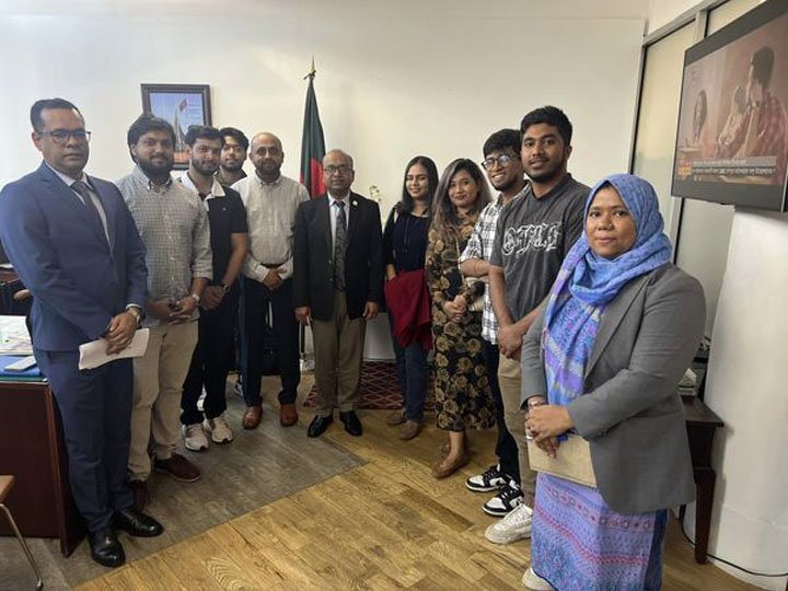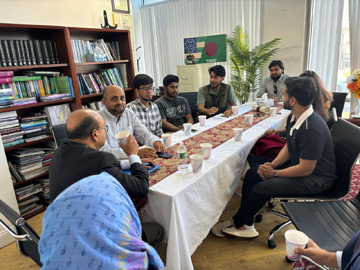 রাসেলের নেতৃত্বে বাংলাদেশ স্টুডেন্ট এসোসিয়েশন (বিএসএ), নিউইয়র্ক-এর প্রতিনিধিরা গত ১১ সেপ্টেম্বর বিকেলে কনসাল জেনারেল নাজমুল হুদার সাথে তার অফিসে সাক্ষাৎ এবং মতবিনিময় করেছেন।