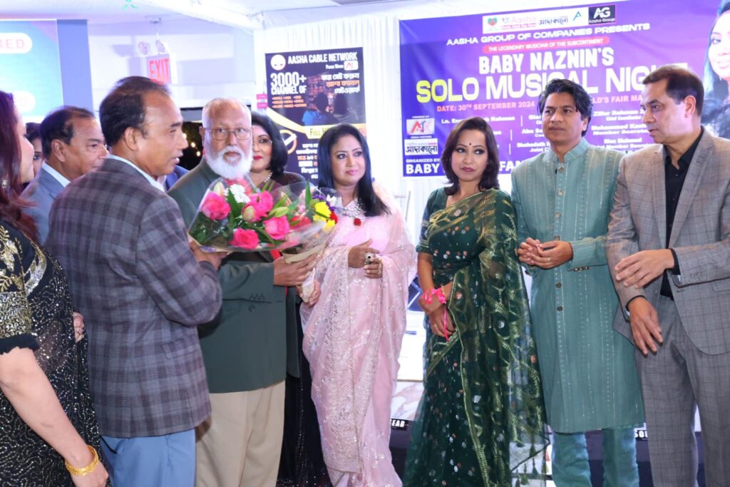অনুষ্ঠানের শুরুতে ফিতা কেটে সঙ্গীতানুষ্ঠানের উদ্বোধন করেন ইউর ড্রিম হোম কেয়ারের সিইও ও প্রেসিডেন্ট এবং বাংলাদেশ সোসাইটির ট্রাস্টি বোর্ডের বর্তমান চেয়ারম্যান ও সাবেক সভাপতি এমএ আজিজ এবং শিল্পী নিজে। এর আগে শিল্পী বেবী নাজনীনকে ফুলেল শুভেচ্ছা জানানো হয়। এ সময় আশা গ্রুপ অব কোম্পানিজের কর্ণধার এবং সাপ্তাহিক সাদাকালো’র সম্পাদকমন্ডলীর সভাপতি ও প্রকাশক আকাশ রহমান, কমিউনিটির বিশিষ্ট ব্যক্তিবর্গের মধ্যে গিয়াস আহমেদ, জিল্লুর রহমান , এটর্নী মঈন চৌধুরী, আখতার হোসেন বাদল, এবাদ চৌধুরী, ফয়েজ চৌধুরী বিলাল চৌধুরী,