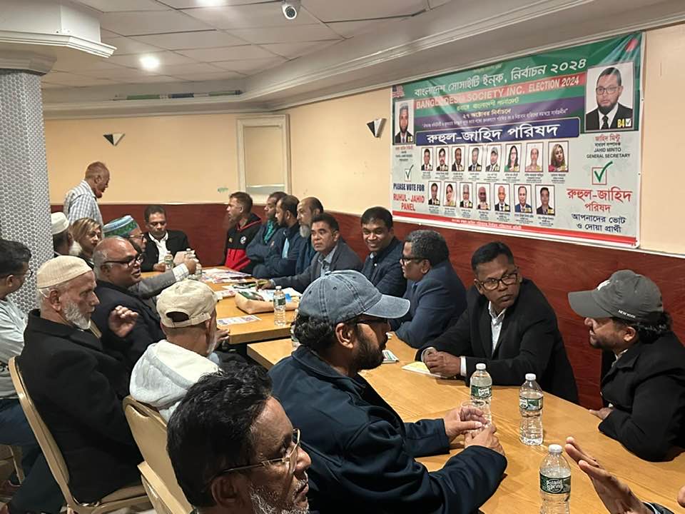 হ-বাংলা নিউজ: নিউইয়র্ক (ইউএনএ): বাংলাদেশ সোসাইটির নির্বাচনে প্রতিদ্বন্দ্বিতাকারী ‘রুহুল-জাহিদ’ প্যানেলের