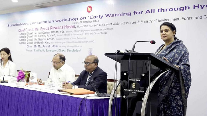 বুধবার সকালে রাজধানীর পান প্যাসিফিক সোনারগাঁও হোটেলে ‘সবার জন্য পূর্ব সতর্কীকরণ: হাইড্রোলজিক্যাল স্ট্যাটাস এবং আউটলুক সিস্টেম’ শীর্ষক পরামর্শক কর্মশালায় প্রধান অতিথির বক্তব্যে তিনি এসব কথা বলেন।