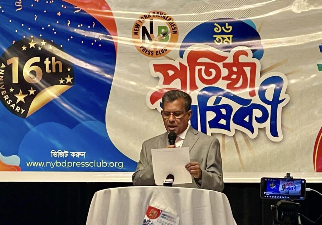 পতনের প্রতিষ্ঠিত বৈষম্যহীন নতুন বাংলাদেশ গড়ার অঙ্গীকারে প্রতিষ্ঠাবার্ষিকী পালিত হলো নিউইয়র্ক বাংলাদেশ প্রেসক্লাবের ১৬তম প্রতিষ্ঠাবার্ষিকী। এ উপলক্ষ্যে রোববার (১৩ অক্টোবর) সন্ধ্যায় নিউইয়র্ক সিটির কিউ গার্ডেনের আগ্রা প্যালেসে এক অনুষ্ঠানের আয়োজন করা হয়। প্রবাসী বাংলাদেশী সাংবাদিক, ক্লাব সদস্য আর কমিউনিটির বিশিষ্ট ব্যক্তিদের অংশগ্রহণে অনুষ্ঠানটি প্রাণবন্ত হয়ে উঠে। অনুষ্ঠানমালার মধ্যে ছিলো শুভেচ্ছা বিনিময়, ক্লাবের নতুন সদস্যদের ফুল দিয়ে বরণ, সংক্ষিপ্ত বক্তব্য, সঙ্গীত আর নৈশভোজ। খবর ইউএনএ’র।