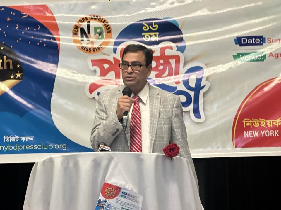 সংক্ষেপে তুলে ধরেন। তিনি বলেন, নিউইয়র্ক বাংলাদেশ প্রেসক্লাব যুক্তরাষ্ট্র থেকে প্রকাশিত বাংলা সংবাদপত্র, টেলিভিশন চ্যানেল, বাংলাদেশের জাতীয় দৈনিক ও টেলিভিশন চ্যানেলের নিউইয়র্ক প্রতিনিধি এবং বিভিন্ন অনলাইন সংবাদ মাধ্যমে কর্মরত পোশাজীবি সাংবাদিকদের প্রাণের সংগঠন। সাংবাদিকতার গুণগত মানোন্নয়ন, সাংবাদিকদের মাঝে পারস্পারিক সৌহার্দ্য সম্প্রীতি বৃদ্ধি ও স্থানীয়