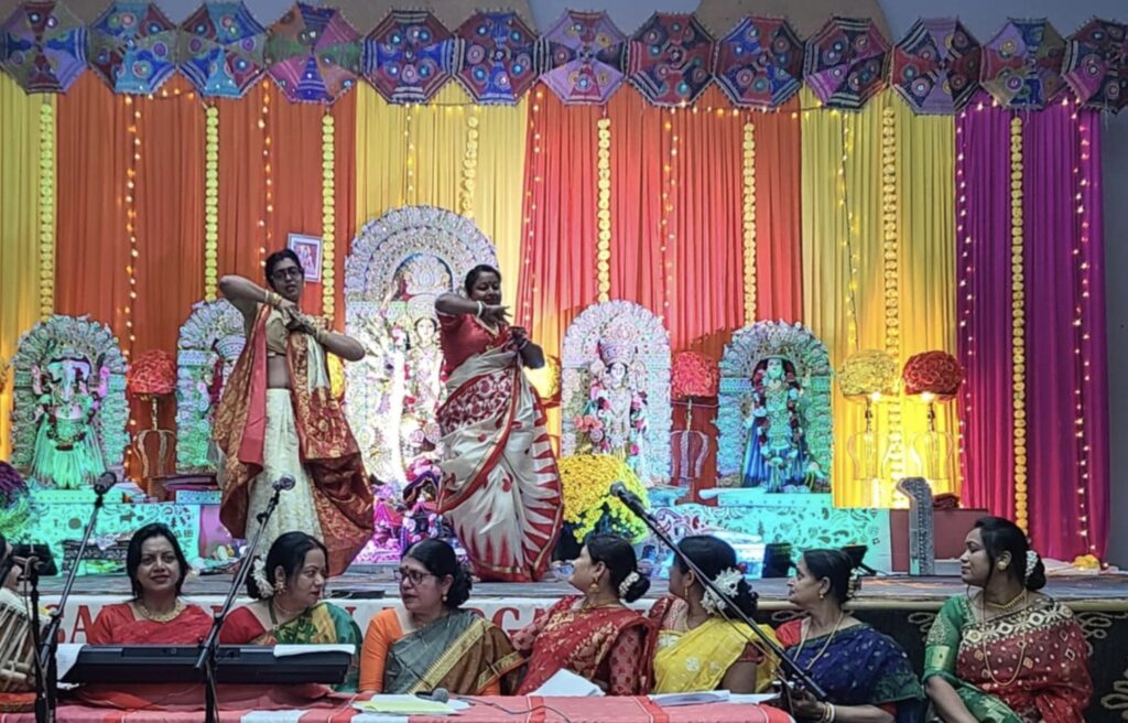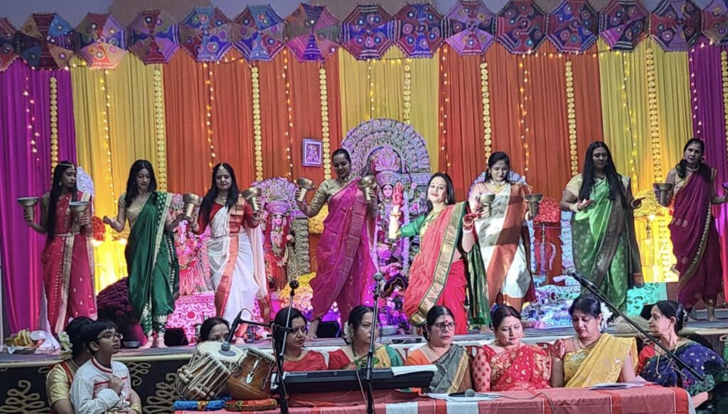 আবালবৃদ্ধবনিতার পূজার বাহারি সাজ ও নয়নাভিরাম পোশাক-আশাকে দুর্গোৎসব প্রাঙ্গণ হয়ে উঠেছিল উৎসবের রঙে রঙীন। অনুকূল আবহাওয়ায় প্রবাসী হিন্দুদের সব পথ এসে যেন মিশে ছিল মন্দির প্রাঙ্গণে।পুরাণে দেবী দুর্গার আবির্ভাব তত্ত্বে বলা হয়েছে, সমাজের সব অশুভ শক্তির বিনাশে দেবী দুর্গার মর্ত্যে আবির্ভাব। ত্রেতাযুগে অসুর কুলের দাপটে মানবজাতি যখন উৎকণ্ঠিত তখন মানব কল্যাণে এই ধরাধামে আবির্ভূত হন ভগবান শ্রী রামচন্দ্র।