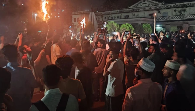 তিনি স্পষ্ট জানান, তাদের ষড়যন্ত্র বাংলার মাটিতে সফল হবে না এবং ফ্যাসিবাদের দালাল ছাত্রলীগ, যুবলীগ, টোকাই লীগকে শক্ত হাতে দমন করা হবে।