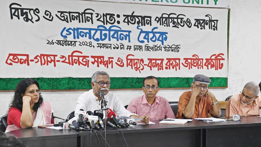 শনিবার ঢাকা রিপোর্টার্স ইউনিটিতে ‘বিদ্যুৎ ও জ্বালানি খাত : বর্তমান পরিস্থিতি ও করণীয়’ শীর্ষক গোলটেবিল বৈঠকে এসব কথা বলেন তারা। এ সময় আয়োজক সংগঠন তেল-গ্যাস-বন্দর রক্ষা জাতীয় কমিটির পক্ষ থেকে ৬ দফা দাবি জানানো হয়।
