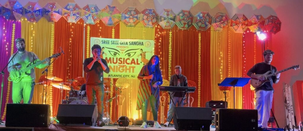 হ-বাংলা নিউজ: আটলান্টিক সিটি থেকে সুব্রত চৌধুরী যুক্তরাষ্ট্রের নিউজারসি অঙ্গরাজ্যের সাউথ জার্সিতে গত ২২ অক্টোবর, মংগলবার শ্রী শ্রী গীতা সংঘের উদ্যোগে পোমনাস্থ বৈকুন্ঠ হিন্দু জৈন মন্দিরের মিলনায়তনে আয়োজন করা হয়েছিল মনোজ্ঞ সংগীত রজনীর।সন্ধ্যা নামতেই প্রবাসী সংগীত পিপাসুদের সব পথ গিয়ে যেন মিশেছিল বৈকুন্ঠ হিন্দু জৈন মন্দিরের মিলনায়তনে।সংগীত অনুষ্ঠান শুরু হওয়ার আগেই মিলনায়তন কানায় কানায় পূর্ণ হয়ে উঠেছিল।