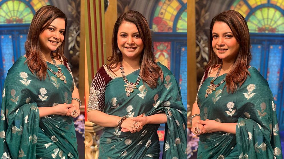 খোলা চুলে লো মেকআপ লুকে বেনারসিশাড়িতে অভিনেত্রীকে বেশ মানিয়েছে। হাতেব্রেসলেট, গলায় মালা, কারে ঝুমকা যেনপুরোদমে বাঙালি সাজে ধরা দিয়েছে।