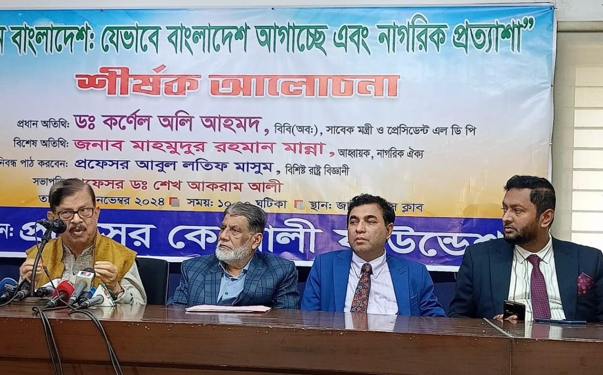 আলোচনা সভায় প্রফেসর ড. শেখ আকরাম আলীর সভাপতিত্বে আরও উপস্থিত ছিলেন রাষ্ট্রবিজ্ঞানী প্রফেসর আবুল লতিফ মাসুম, বাংলাদেশ জাতীয়তাবাদী গবেষণা কেন্দ্রের চেয়ারম্যান এ কে এম রেজাউল করিম, ড. ফয়জুল হক, গণঅধিকার পরিষদের ফারুক হাসানসহ আরও অনেকে।