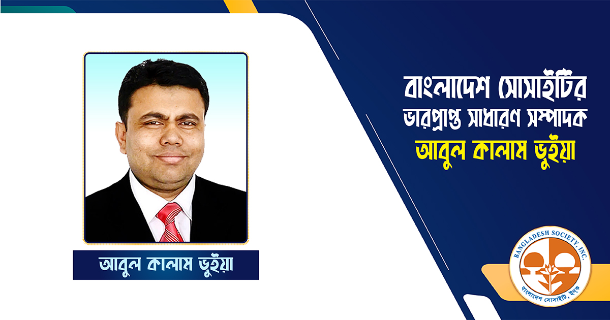 গত ১৩ জানুয়ারি জরুরি প্রয়োজনে সোসাইটির সাধারণ সম্পাদক মোহাম্মদ আলী বাংলাদেশে যাওয়ায় গঠনতন্ত্র অনুযায়ী সহ-সাধারণ সম্পাদক ভারপ্রাপ্ত সাধারণ সম্পাদকের দায়িত্ব গ্রহণ করেন । সাধারণ সম্পাদক মোহাম্মদ আলী নিউইয়র্কে ফিরে আসার আগ পর্যন্ত আবুল কালাম ভুইয়া ভারপ্রাপ্ত সাধারণ সম্পাদকের দায়িত্ব পালন করবেন ।