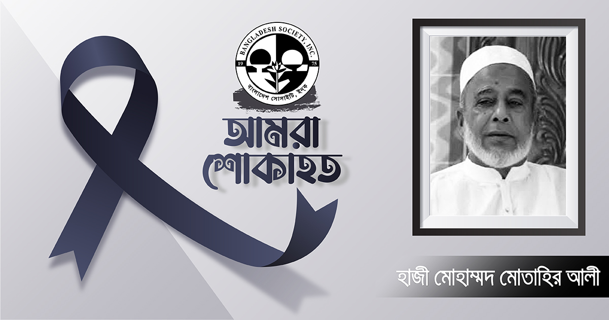 এক শোকবার্তায় সোসাইটির সভাপতি আতাউর রহমান সেলিম ও বারপ্রাপ্ত সাধারন সম্পাদক আবুল কালাম ভূঁইয়া, ট্রাস্টি বোর্ডের চেয়ারম্যান মোহাম্মদ আজিজ এবং প্রধান নির্বাচন কমিশনার জামাল উদ্দিন জনি মরহুমের বিদেহী আত্মার মাগফেরাত কামনা করেন এবং সকল প্রবাসীদের কাছে দোয়া চান যাতে মরহুমকে আল্লাহ জান্নাতের সর্বোচ্চ মাকাম দান করেন। একই সাথে শোক সন্তপ্ত পরিবারের প্রতি বাংলাদেশ সোসাইটির পক্ষ থেকে গভীর সমাবেতনা জ্ঞাপন করেন।