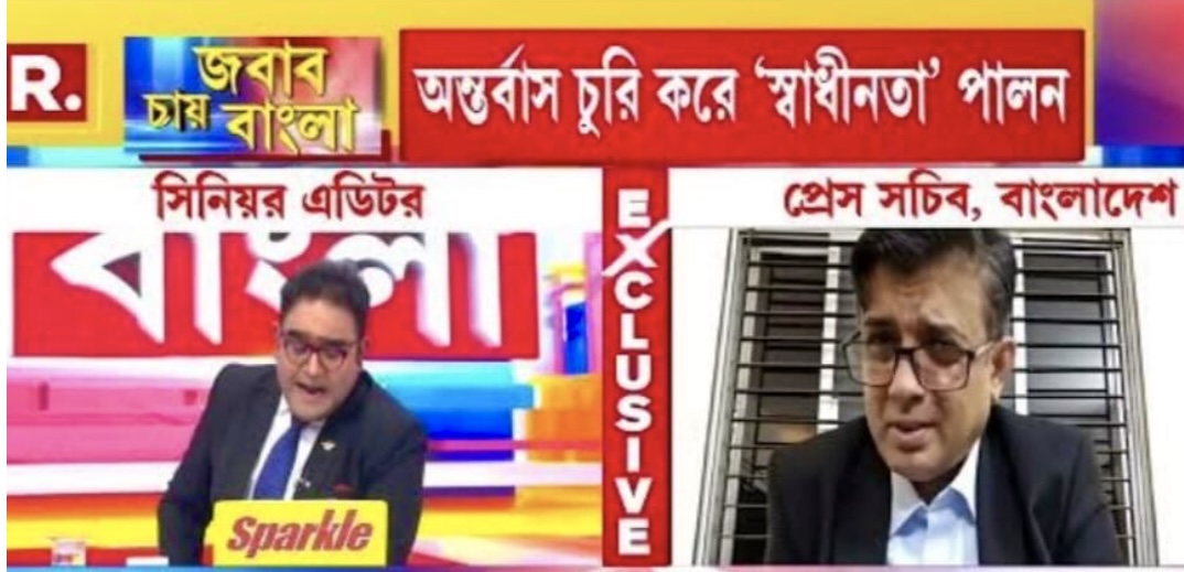 হ-বাংলা নিউজ: হাকিকুল ইসলাম খোকন,ভারতীয় গণমাধ্যম রিপাবলিক বাংলার সিনিয়র এডিটর ময়ূখ রঞ্জনের টকশো ‘জবাব চায় বাংলা’ শো’তে ইউনূসের অন্তর্বর্তী সরকারের প্রেসসচিব শফিকুল আলম এক দর্শকের প্রশ্নের জবাবে ভালো মানের গাঁজা সরবরাহ করতে চেয়েছেন।