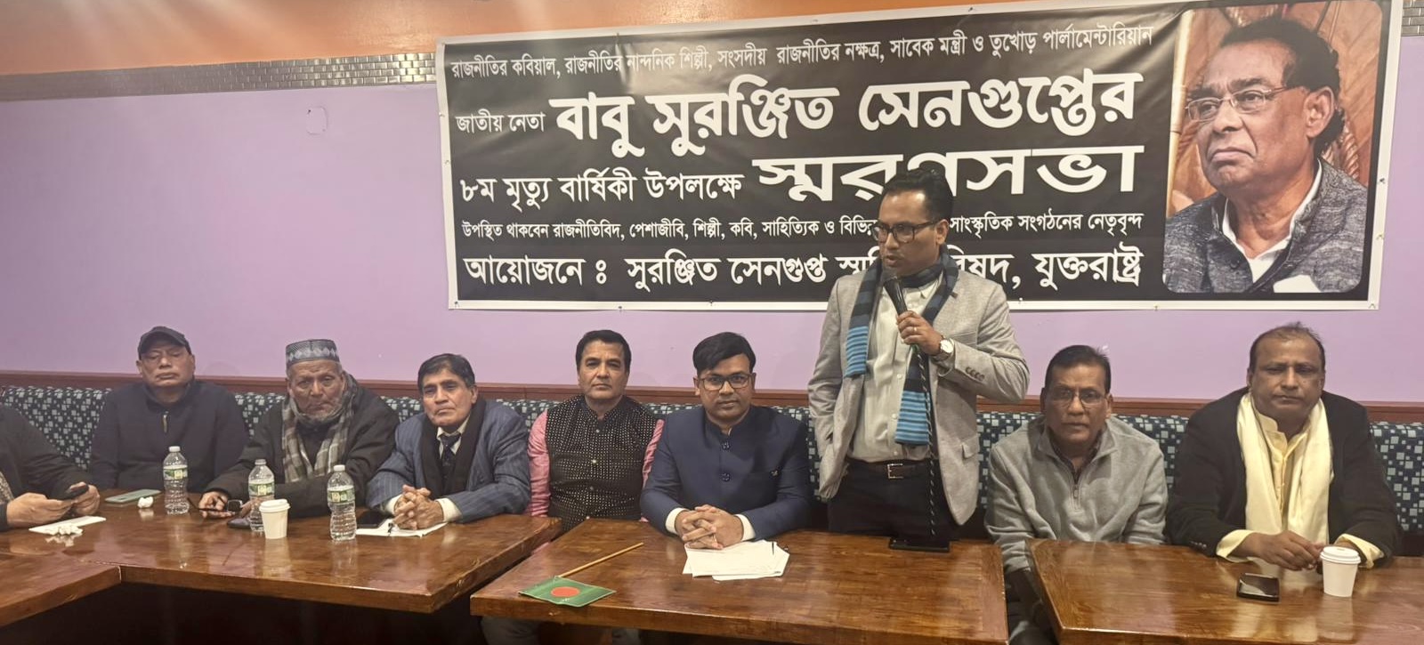 সুরঞ্জিত সেনগুপ্ত স্মৃতি পরিষদের সভাপতি রুহেল চৌধুরীর সভাপতিত্বে এবং সংগঠনের সাধারণ সম্পাদক সুব্রত তালুকদারের পরিচালনায় অনুষ্ঠিত সভায় প্রধান আলোচক ছিলেন সুরঞ্জিত সেনগুপ্ত স্মৃতি পরিষদের প্রধান উপদেষ্টা ও দিরাই উপজেলা আওয়ামী লীগের সাবেক সভাপতি তোফায়েল চৌধুরী। বিশেষ অতিথি ছিলেন মূলধারার রাজনীতিক ডক্টর দিলীপ নাথ।অন্যদের মধ্যে বক্তব্য রাখেন নিউইয়র্ক স্টেট আওয়ামী লীগের সাধারণ সম্পাদক শাহিন আজমল, বিশিষ্ট সাংবাদিক সিতাংশু গুহ, কবি ফকির ইলিয়াস, টেক্সাস আওয়ামী লীগের সাধারণ সম্পাদক রহিম নেহাল, টাইম টেলিভিশনের সিইও আবু তাহের, বিশিষ্ট সাংবাদিক মাহবুবুর রহমান, পার্ক ভিউ মেডিকেল কলেজের পরিচালক দেবাশীষ দে , যুক্তরাষ্ট্র আওয়ামী লীগ নেতা আক্তার হোসেন, দিলীপ দে,ঝিলাম চৌধুরী, বঙ্গবন্ধু সাংস্কৃতিক জোট যুক্তরাষ্ট্রের আহ্বায়ক কাজল মাহমুদ, বিশিষ্ট সংগীত শিল্পী বাপ্পি সোম,ফোবানা কেন্দ্রীয় কমিটির যুগ্ম সাধারণ সম্পাদক আমিনুল ইসলাম কলিন্স, কবি ফারহানা ইলিয়াস তুলি, গৌতম দে,নুপুর দে, বিজু পুরকায়স্থ,বিপ্লব পাল, অমিত জী বাণিয়া, বাবুল চন্দ, জাকির চৌধুরী,সুমন মাহমুদ, তৌকির হোসেন প্রমুখ।
