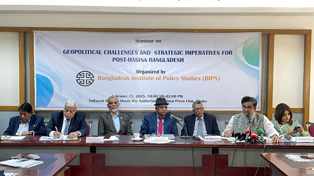 শনিবার জাতীয় প্রেস ক্লাবের তফাজ্জল হোসেন মানিক মিয়া হলে ‘হাসিনা-পরবর্তী বাংলাদেশের জন্য ভূ-রাজনৈতিক চ্যালেঞ্জ এবং কৌশলগত প্রয়োজনীয়তা’ শীর্ষক আলোচনা সভায় বক্তারা এসব কথা বলেন। সভাটি আয়োজন করে বাংলাদেশ ইনস্টিটিউট অব পলিসি স্টাডিজ (বিআইপিএস)।
