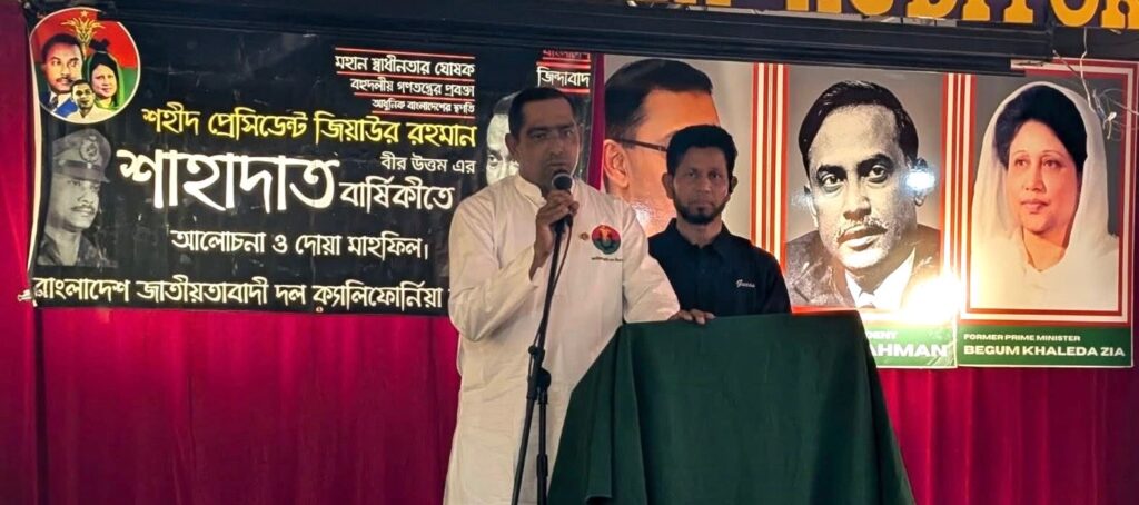 হ-বাংলা নিউজ: শহীদ জিয়ার শাহাদাত বার্ষিকীতে ক্যালিফোর্নিয়া বিএনপির উদ্যোগে ভাব গম্ভীর আলোচনা সভা ও দোয়া মাহফিল অনুষ্ঠিত।