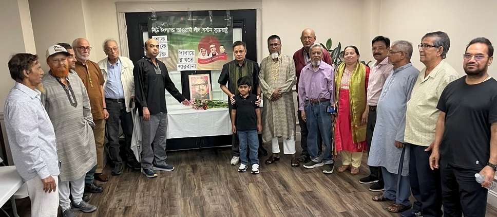 বিনম্র শ্রদ্ধা ও যথাযোগ্য মর্যাদায় যুক্তরাষ্ট্রের বস্টনে জাতির পিতা বঙ্গবন্ধু শেখ মুজিবুর রহমানের ৫০তম শাহাদাত বার্ষিকী ও জাতীয় শোক দিবস পালন করেছে নিউ ইংল্যান্ড আওয়ামী লীগ। শনিবার, ১৬ই আগস্ট, ক্যাম্ব্রিজের এক মিলনায়তনে সংগঠনের সহ-সভাপতি আব্দুর রাজ্জাকের সভাপতিত্বে এবং সাধারণ সম্পাদক ইকবাল ইউসুফের সঞ্চালনায় আয়োজিত আলোচনা সভায় প্রধান বক্তা ছিলেন যুক্তরাষ্ট্র আওয়ামী লীগের উপদেষ্টা ও সাবেক সাধারণ সম্পাদক শামীম আহমেদ।