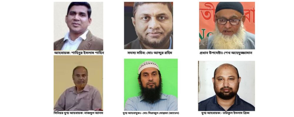 আহবায়ক: শাহিনুর ইসলাম শাহিন, সিনিয়র যুগ্ম আহবায়ক: নাজমুল আলম, যুগ্ম আহবায়ক যথাক্রমে মোঃ সিরাজুল মোস্তফা (জাভেদ), তরিকুল ইসলাম প্রিন্স, মোঃ জামাল উদ্দিন ( নায়াগ্রা ফলস), মুন্সি সাজেদুর রহমান টেন্টু, সারোয়ার আরিফ, হাসান মহায়মেন, মোঃ জাকারিয়া, সোলায়মান হোসাইন সালমান, মাহমুদুল হাসান, মোঃ জি মোস্তফা, আহমেদ মঈন, নুর সাফা (নায়াগ্রা ফলস), একেএম আবু হানিফ, আ: রাজ্জাক মাসুদ এবং সৈয়দ ওয়াসিম বাবু।