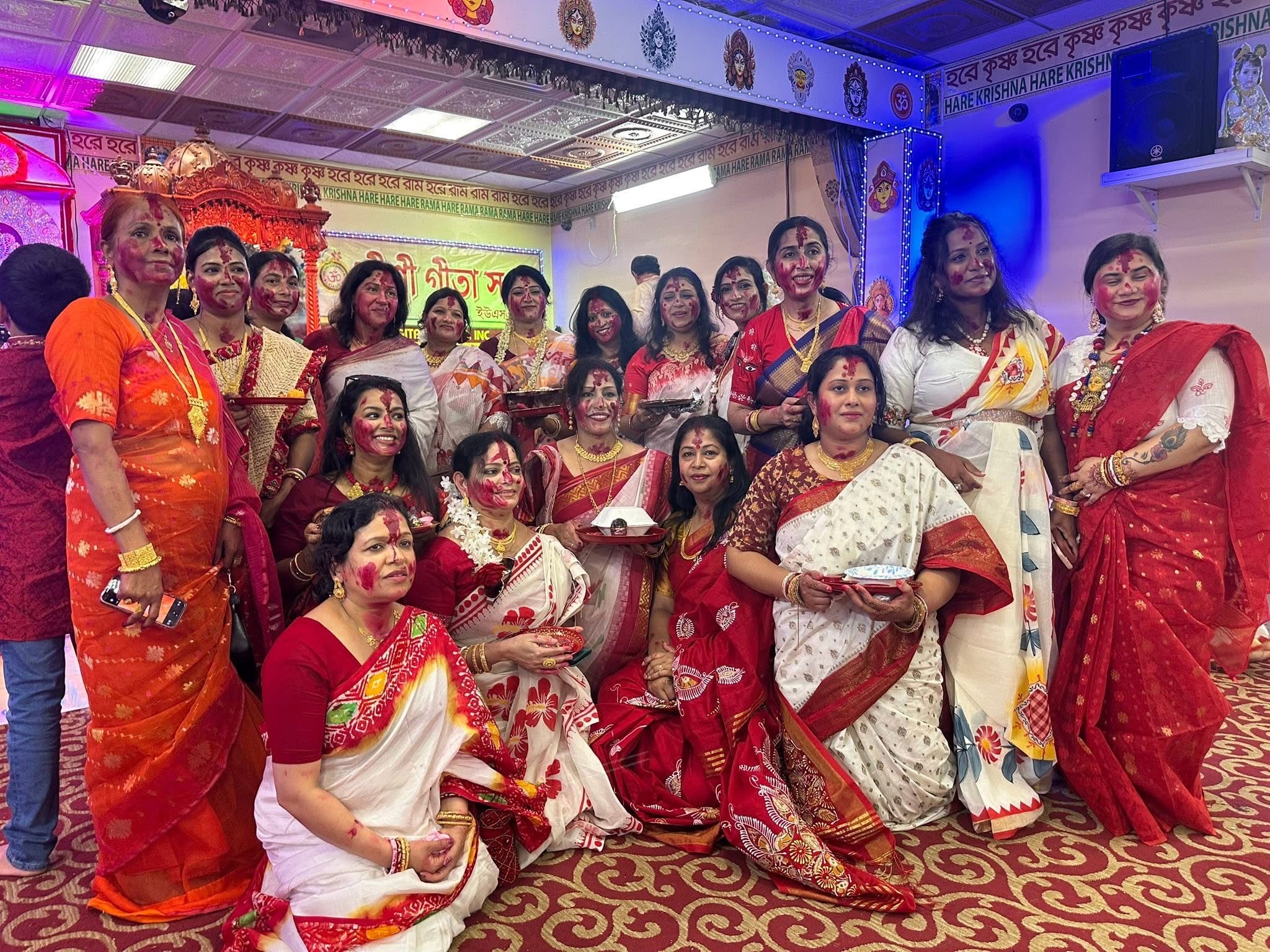 দুর্গোৎসবের শেষ দিন সিঁদুর খেলায় মেতেছিল প্রবাসী হিন্দু নারীরা। দেবী দুর্গার বিদায়ের আগে মন্দিরে মন্দিরে চলে সিঁদুর খেলা। সকালে পূজা অর্চনার পর দেয়া হয় পুষ্পাঞ্জলি। এরপরই হিন্দু বিবাহিত নারীরা দেবীর পায়ে লাল টকটকে সিঁদুর নিবেদন করেন। পরে সেই সিঁদুর একে অপরকে লাগিয়ে আগামী দিনের জন্য শুভ কামনা করেন। সেই সঙ্গে স্বামী সন্তানের মঙ্গল কামনা করেন।