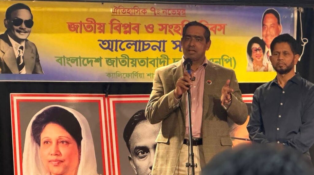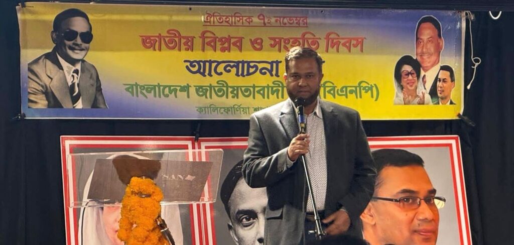 খায়রুজ্জামান মামুনঃ বাংলাদেশের ইতিহাসে স্মরণীয় ও গৌরবময় দিন ৭ নভেম্বর জাতীয় বিপ্লব ও সংহতি দিবস উপলক্ষে ক্যালিফোর্নিয়া বিএনপির উদ্যোগে এক আলোচনা সভা অনুষ্ঠিত হয়েছে।গত ৯ই নভেম্বর ২০২৫, রোববার, স্থানীয় সময় সন্ধ্যা ৭টা ৩০ মিনিটে লস অ্যাঞ্জেলেসের প্রান কেন্দ্রে অবস্থিত অনুপমা রিয়া অডিটোরিয়ামে এ এ সভা অনুষ্ঠিত হয়।